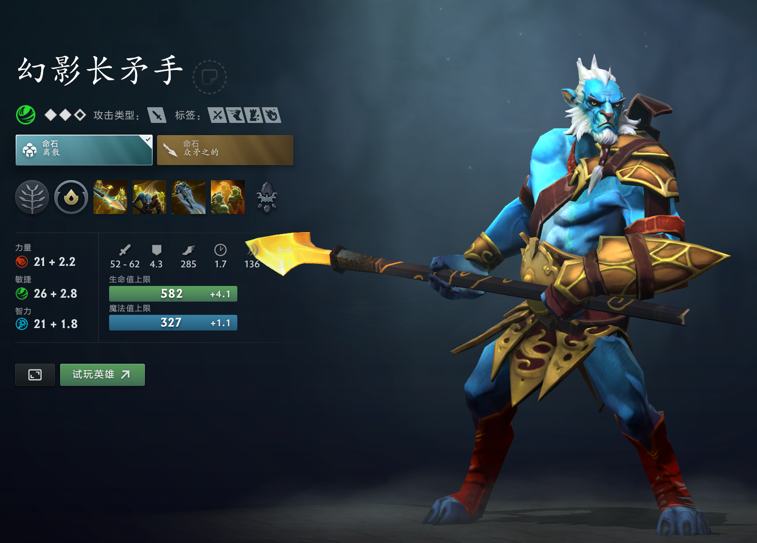 幻影长矛手的对线能力属于是比较拉胯了,可以说前期的对线期是非常痛苦的,只有一个非常低人一等的减速,打起来也没那么强壮,所以只要你觉得辅助给你的吃树不够多的话一定记得自己别为了省钱买装备而一直死了出来死了出来这样会养出一个无解肥的敌人。
